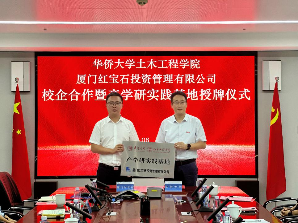 8月6日下午,必赢76net线路官网与厦门红宝石投资管理有限公司携手共建的产学研实践基地授牌仪式圆满举行。必赢76net线路官网院长刘阳、副院长李海锋,厦门红宝石公司董事长徐钢、党支部书记陈祖伟、总经理杨保清以及中建海峡(厦门)建设发展有限公司等相关人员出席仪式。