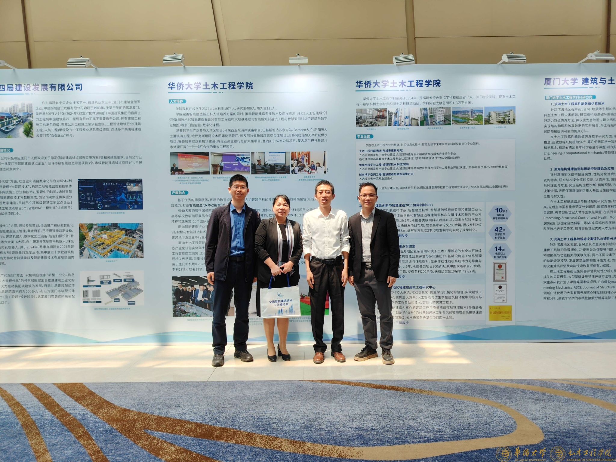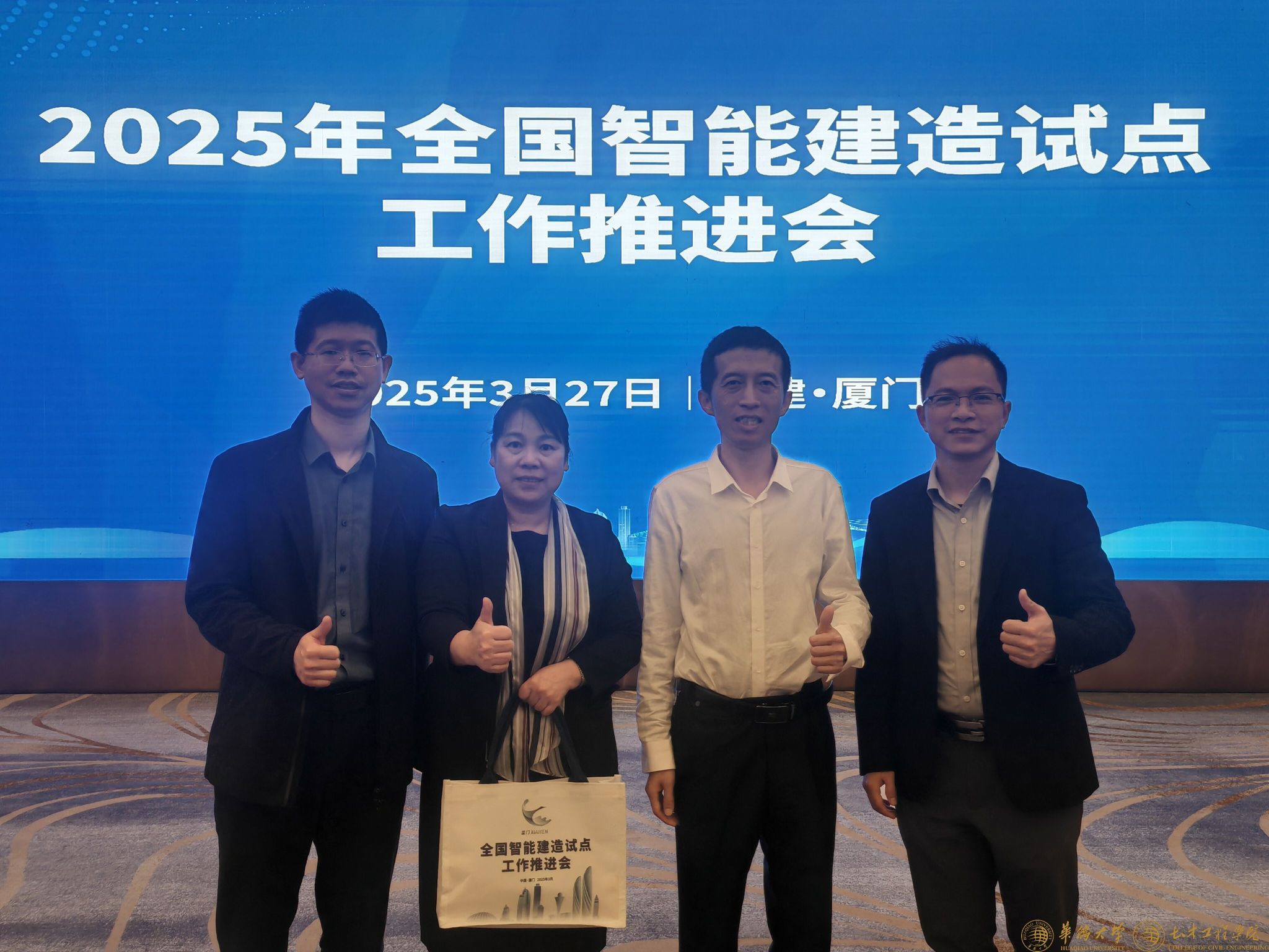 3月27日,住房和城乡建设部在厦门召开智能建造试点工作推进会。会议通报了2024年度智能建造城市试点工作情况,部署推进2025年度智能建造城市试点工作。必赢官网党委书记陈雪琴、副院长蔡奇鹏、土木工程系主任胡红松、岩土与地下工程系陈星欣教授应邀参会,以智能技术赋能土木工程传统学科,探索产教融合的智能建造人才培养新模式,获得住建部领导及与会专家的高度肯定。