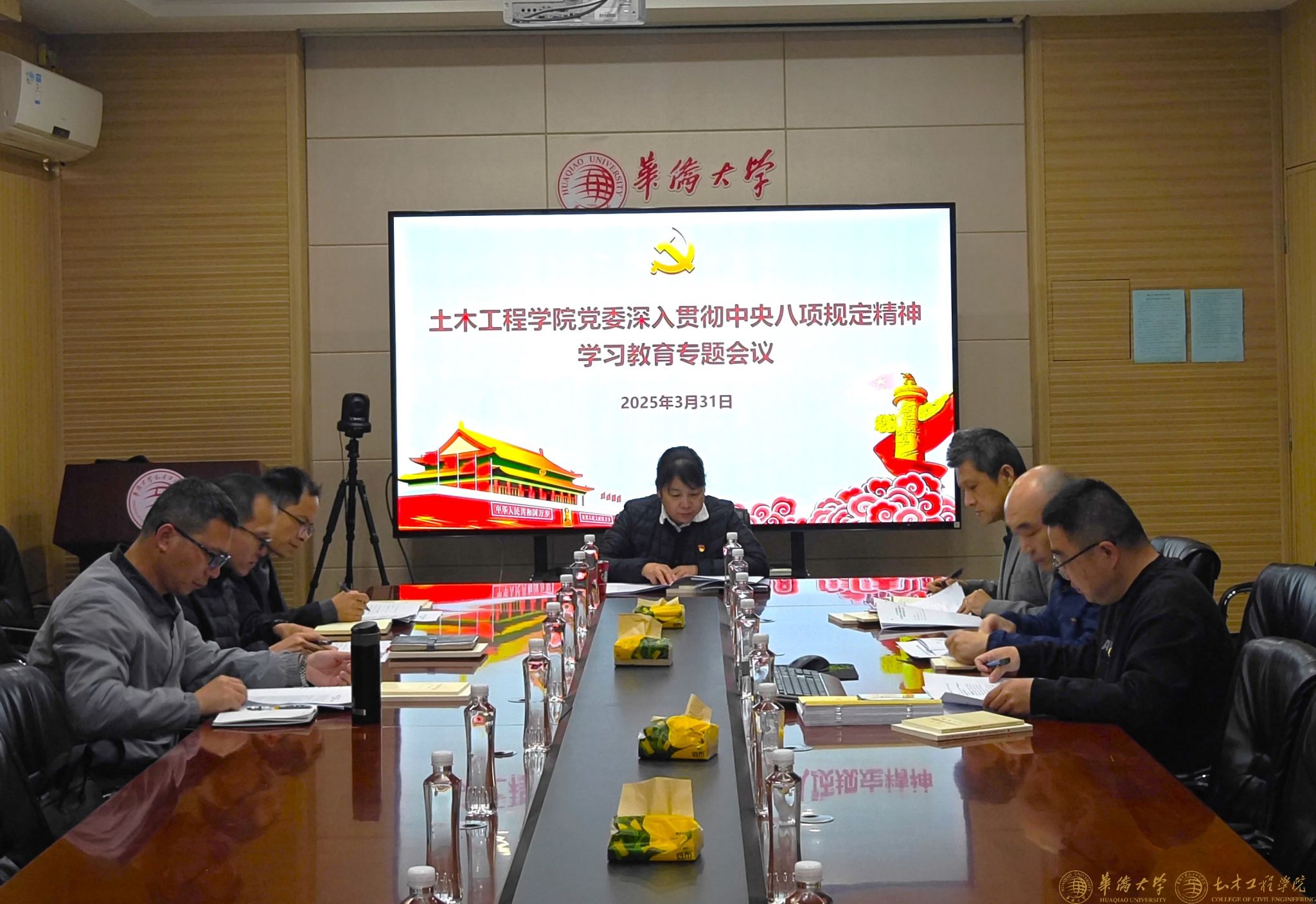 3月31日上午,必赢76net线路官网党委在C5-406会议室召开深入贯彻中央八项规定精神学习教育专题会议。学院党委委员与会。会议由党委书记陈雪琴主持。