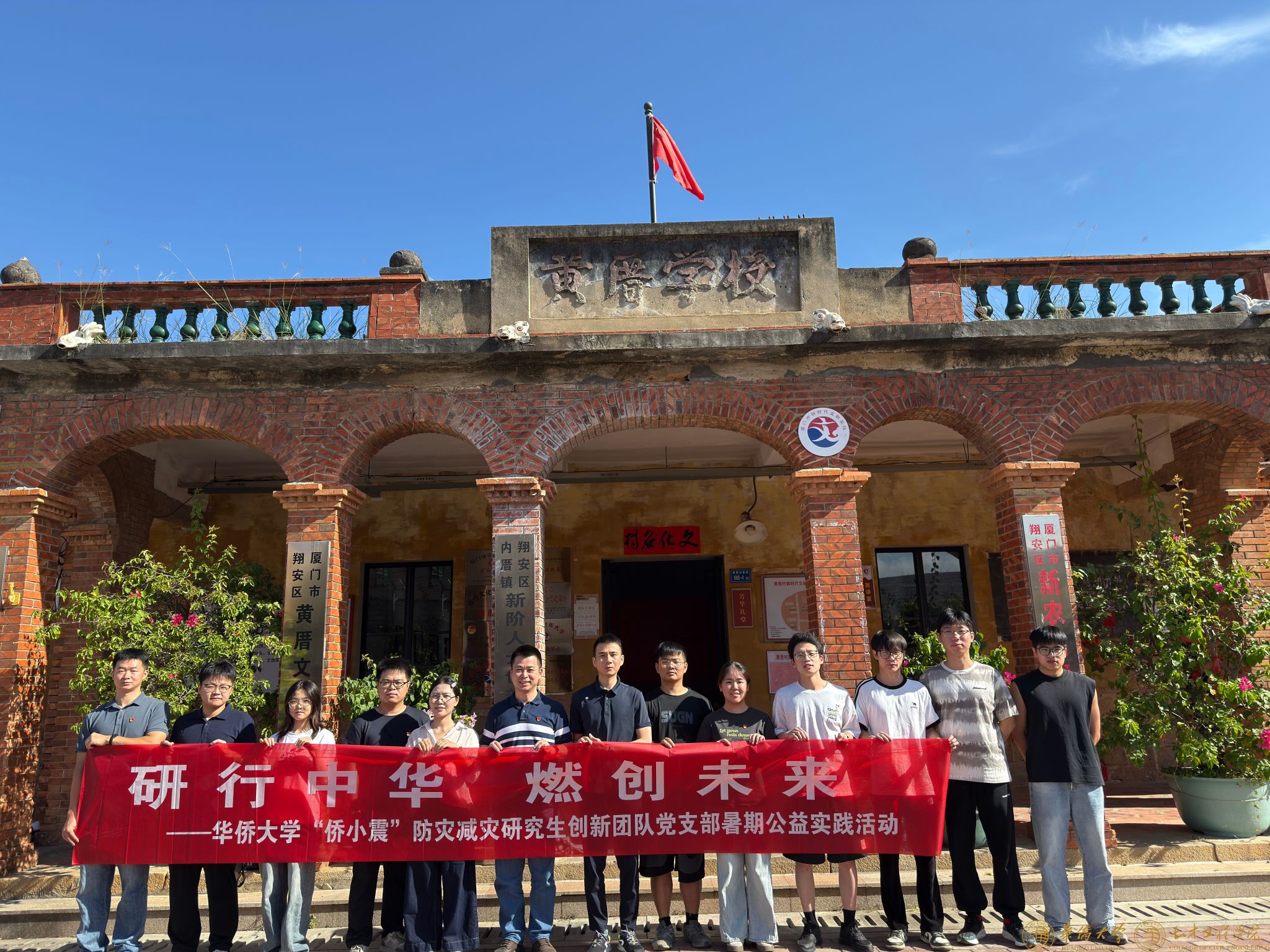9月18日,必赢76net线路官网“侨小震”防灾减灾研究生创新团队党支部(以下简称“党支部”)赴厦门黄厝村、曾厝村开展“研行中华 燃创未来”暑期公益实践活动。现代组合结构和抗震防灾创新团队党支部书记叶勇教授,青年教师张超众、黄婵应邀参加。