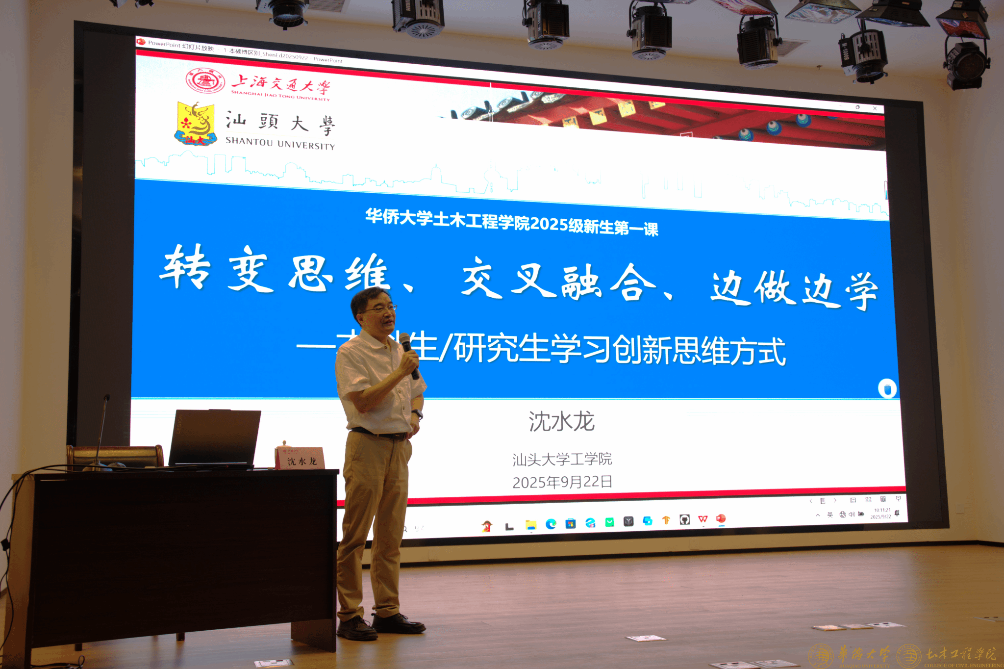 9月22日上午,必赢76net线路官网针对2025级全体新生开展 “新生开学第一课” 专题讲座,讲座于王源兴国际会议中心 G204 会议室举行。汕头大学工学院院长、欧洲科学院外籍院士沈水龙教授受邀主讲,学院领导、教师代表及 2025 级本研新生参加,副院长蔡奇鹏主持。